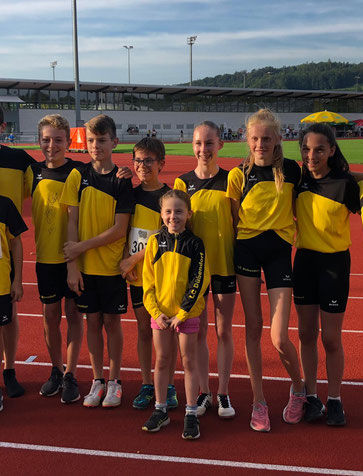 Gestartet wurde mit 3 Staffeln über 5x frei. Sowohl die Jungs (Kimi, Sven, Moritz, Maurice, Daniel) wie auch die Mädels (Zoja, Sabrina, Fabienne, Leni, Sarah) liefen tolle Zeiten und verbesserten mit super Zeiten von 53.94s und 54.19s beide die Clubrekorde. Damit sind die Jungs auf Platz 1 in der Kantonalen Bestenliste und die Mädels auf Platz 2.